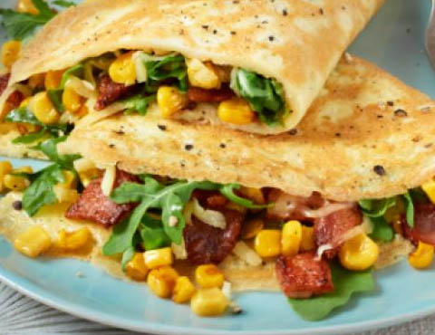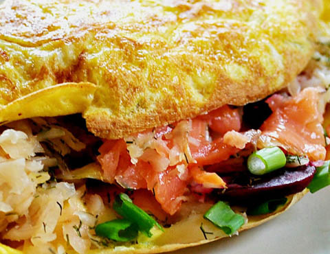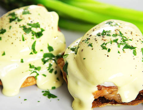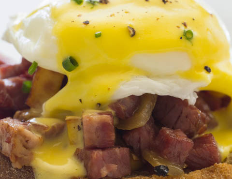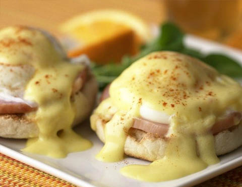 and traditional garnish, served with maple cream sauce & seasonal fruits